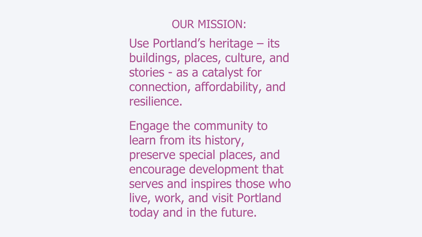 Create an inclusive community-driven vision for historic preservation that reflects Portland’s diverse values and needs