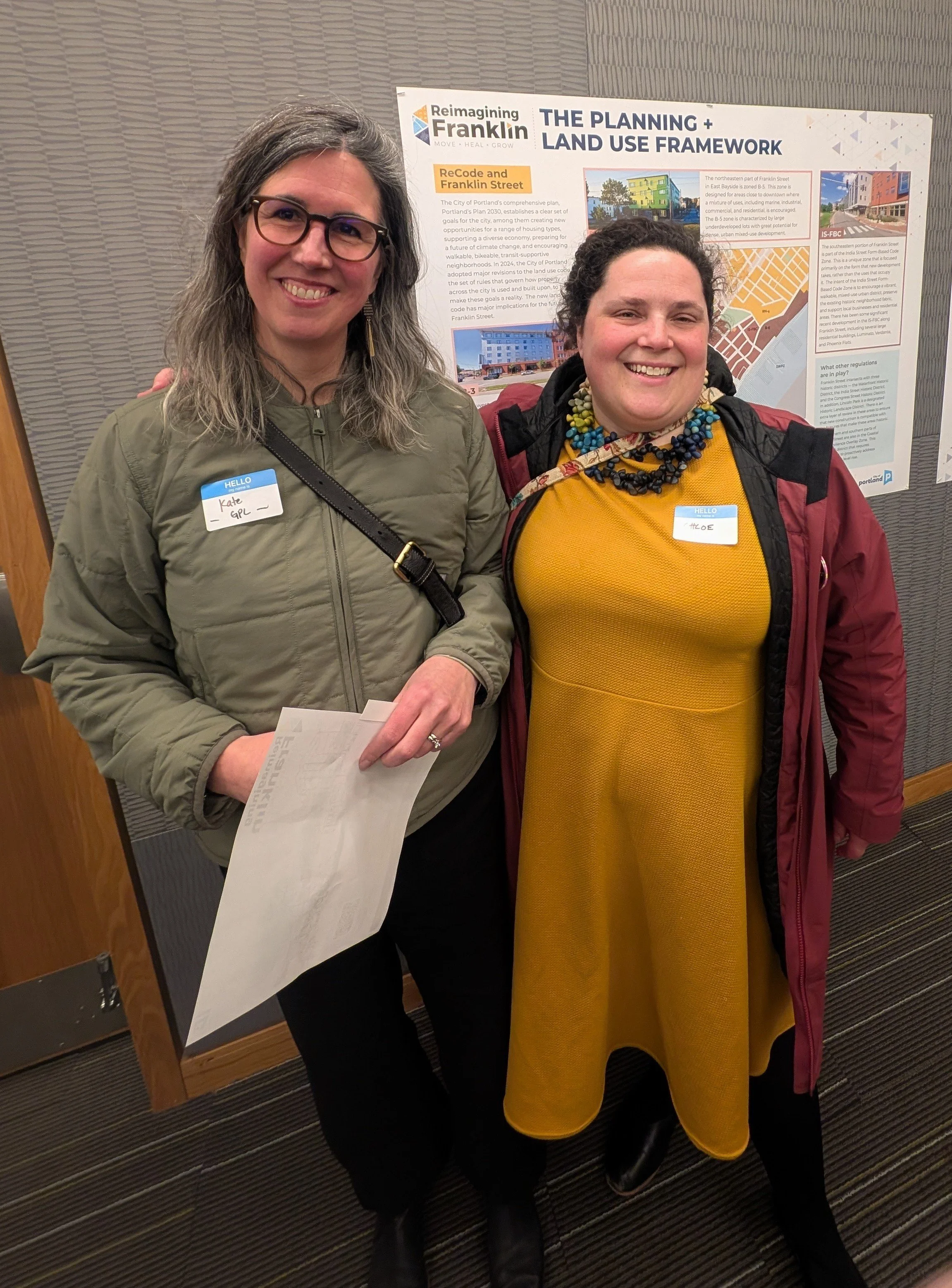Executive Director Kate Lemos McHale and Board Vice President Chloe Martin at the Franklin Street Redesign Open House