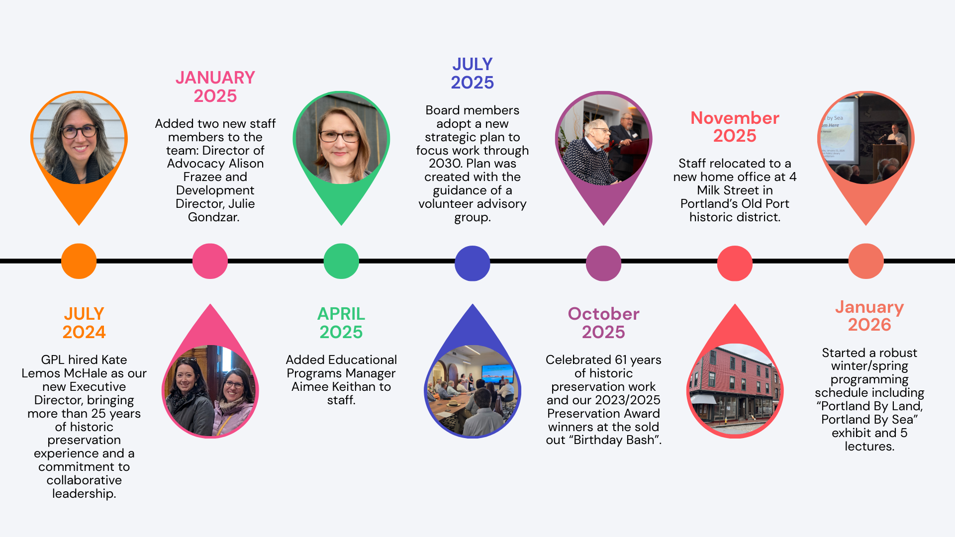 The Board of Trustees adopted a new 2025-2030 Strategic Plan, committing to our mission, vision, and values, outlining strategic initiatives, and providing Greater Portland Landmarks a direction for our work and growth over the next five years.