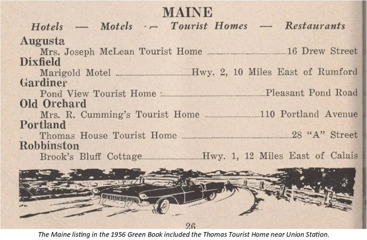 Benjamin Thomas worked as a Red Cap at Union Station while his wife Edie and other family members operated the Thomas House Tourist Home, a 16-room rooming house nearby at 28 A Street. Owing to the green lantern, lit rain or shine, underneath the front bay window the business was more commonly known by its nickname “The Green Lantern”. This site was featured in a great Boston Globe piece,"When travel was treacherous for Black people: The Green Book’s legacy in New England,“ last weekend, for which Greater Portland Landmarks provided research and an interview.