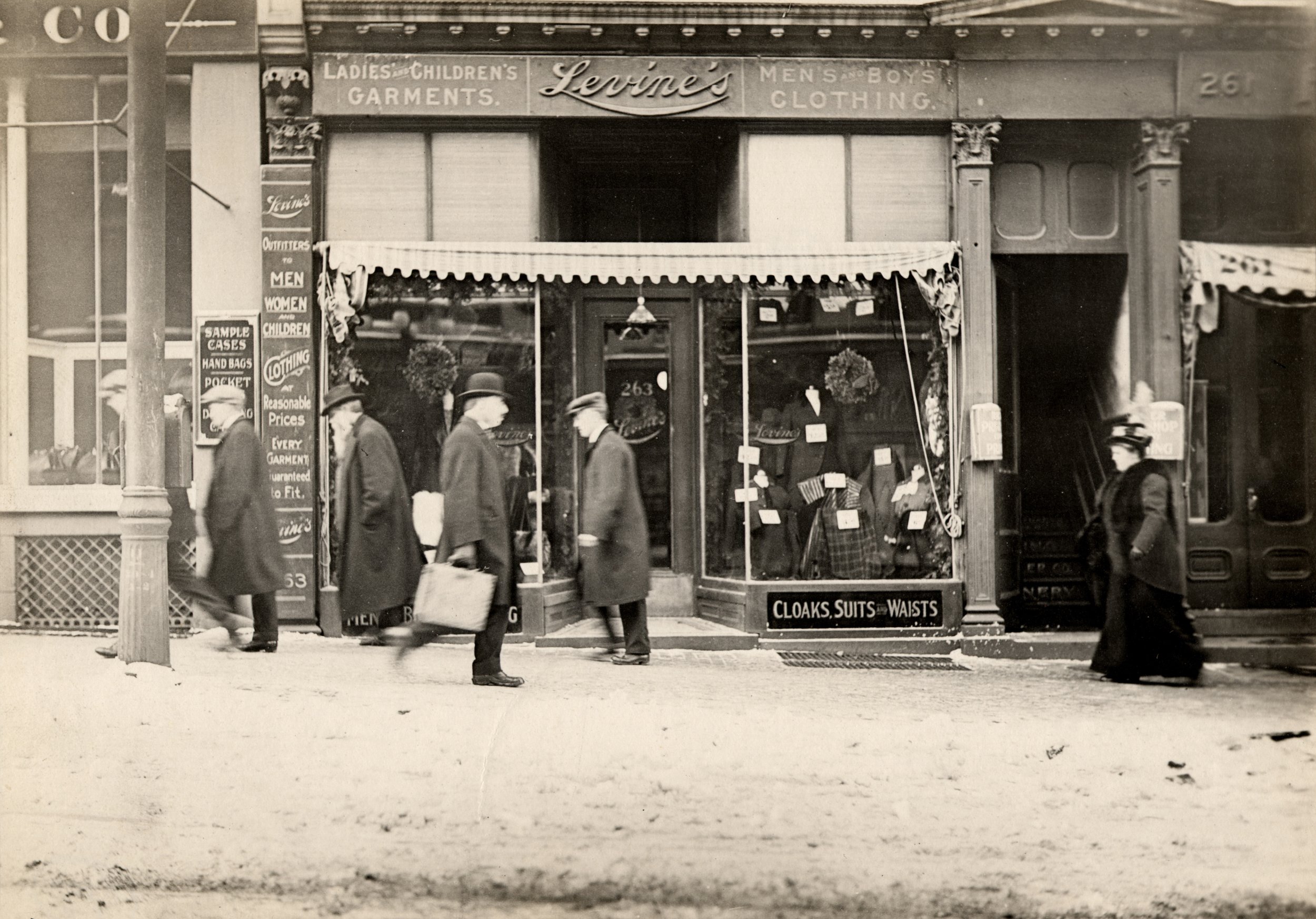 Levine’s Clothing Store, ca. 1912—one of Portland’s many Jewish owned businesses—was located at 263 Middle Street. Collections of Maine Historical Society, MaineMemory.net #5579.