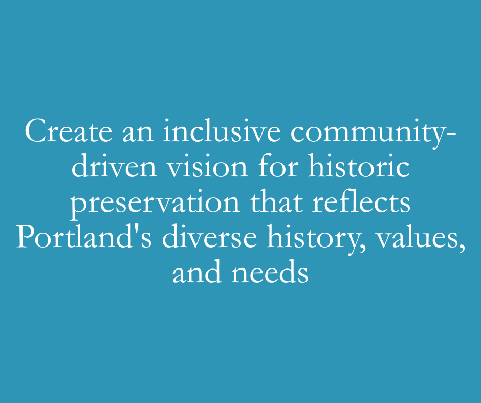 WE ENGAGE the community to learn from its history, preserve special places, and encourage development that serves and inspires those who live, work, and visit Portland today and in the future.